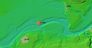 馬淵川は岩手県岩手郡葛巻町を源流とする河川で、水量も多く度々氾濫していた記録も残されています。水の災害に対して、昔の人々がどのように向き合っていたのかを知る一つの手段として、史跡の解析が挙げられます。多くの城館が、縄文時代から平安時代までの長きにわたる小規模集落を中心に成立した物が多く見られます(特に北東北地域に多い)。長期間人々が居住していた場所ということであれば、種々の災害で甚大な被害を受け続ける場所は避けられているとも考えられます。こうした観点で見た場合、城館はその成立年代によって、災害耐性が異なる可能性があります。