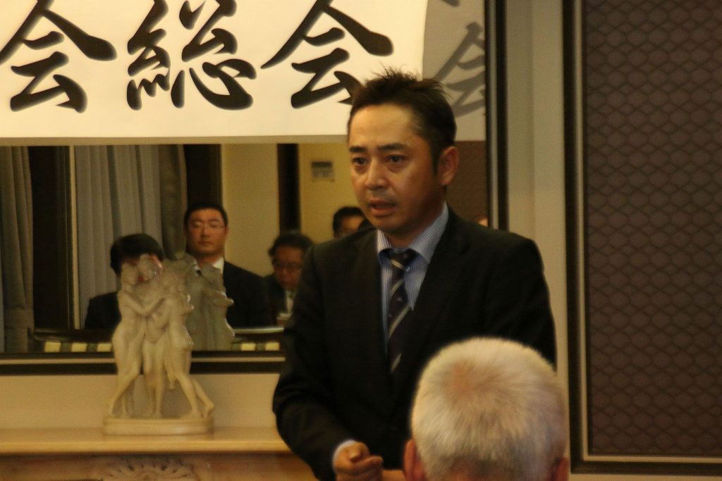 大槻副会長への哀悼の意を表するため、総会開始前に参加者全員で1分間の黙とうをささげました。 始めに岩本会長より挨拶があり、その後岩本会長を議長に選出しました。